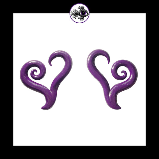 Hearts - 6g 4mm Purple - Handmade Clay Gauge Earrings