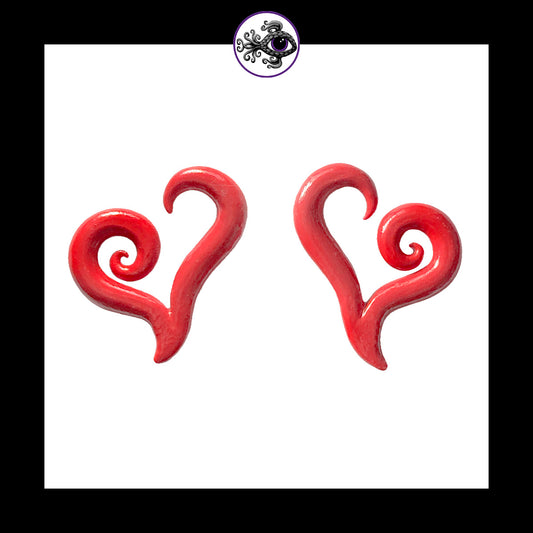 Hearts - 6g 4mm Red - Handmade Clay Gauge Earrings