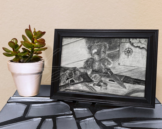 Homicidal Teddy Bear - Print of Original Charcoal Drawing