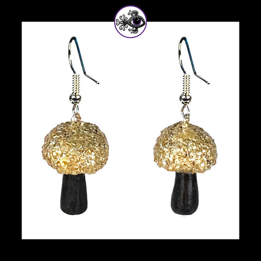 Mushrooms - Gold & Black Shimmer - Handmade Clay Dangle Earrings *Custom Order Only*
