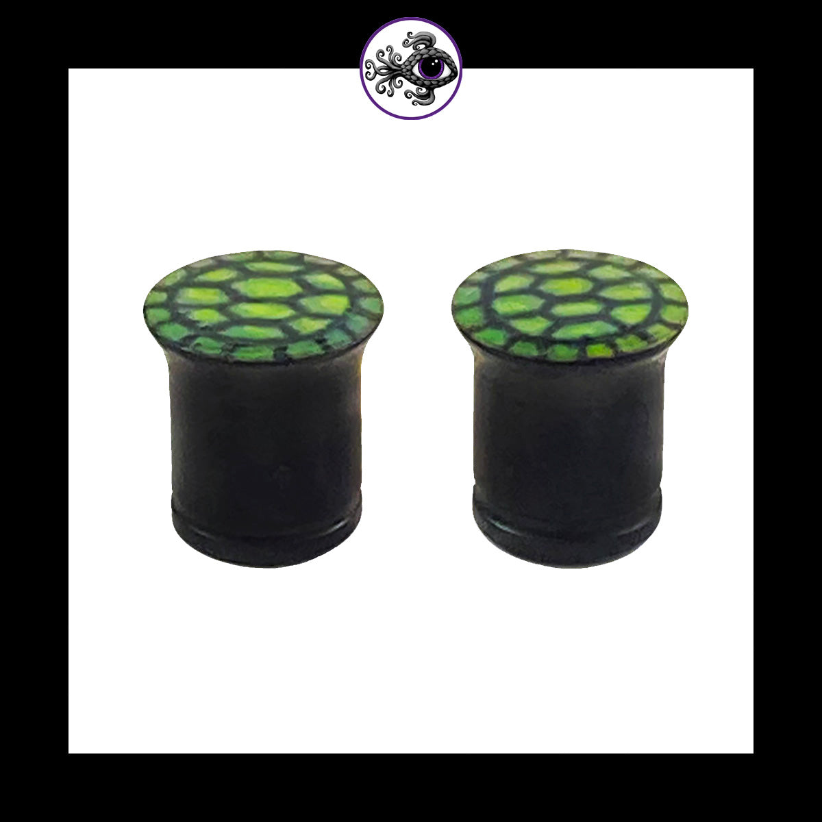 0g 8mm Turtle Shell Plugs - Hand Painted - Polymer Clay in Stainless Steel Gauge Earrings