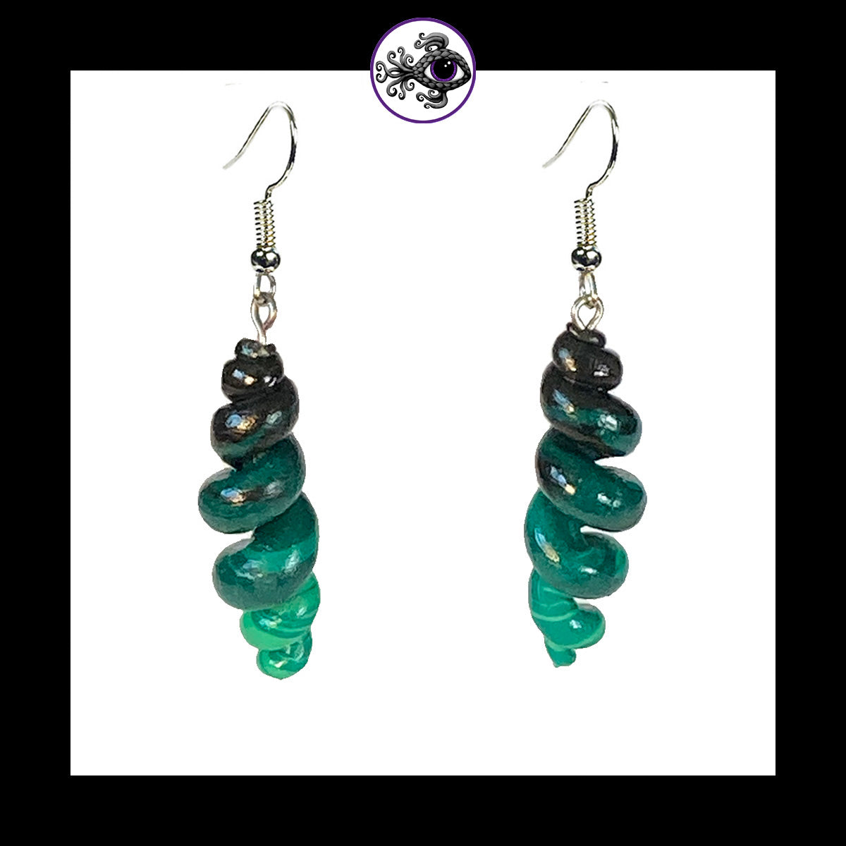 Spiral - Corkscrew - Turquoise & Black - Handmade Clay Dangle Earrings